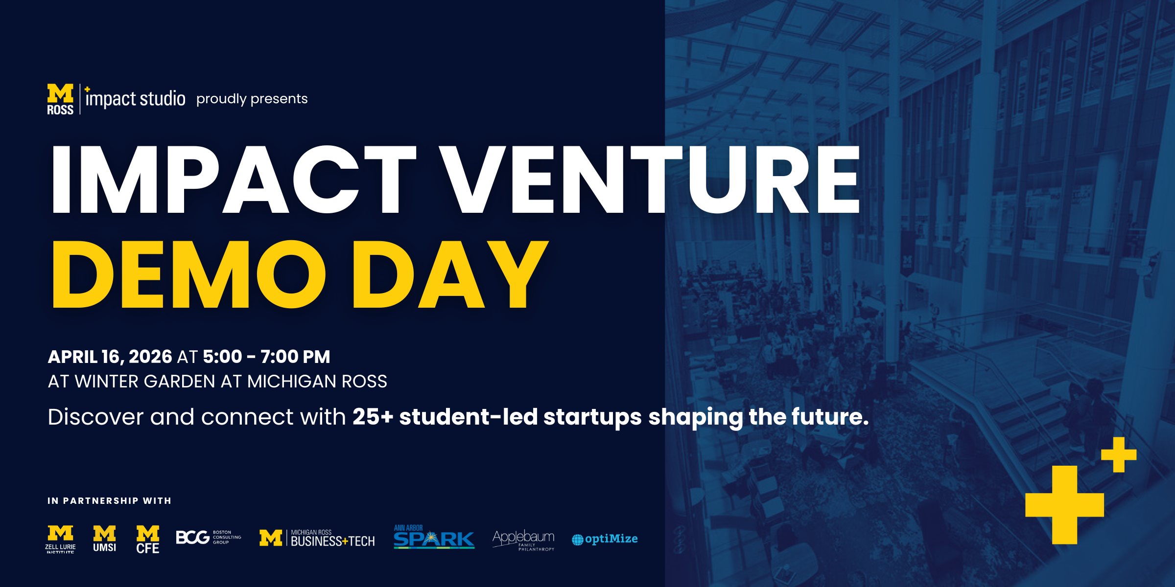 This event is made possible through our partnerships with the Applebaum Family Philanthropy, Ann Arbor SPARK, Boston Consulting Group, Business+Tech, Center for Entrepreneurship, and Zell Lurie Institute.